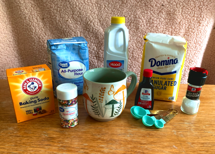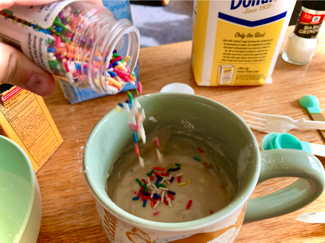 - Add dry ingredients to mug- batter should be up to about half the mug