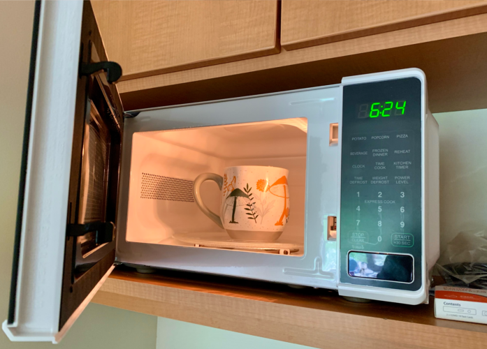 - Microwave mug for 1 minute 45 seconds (Remove the fork before microwaving)