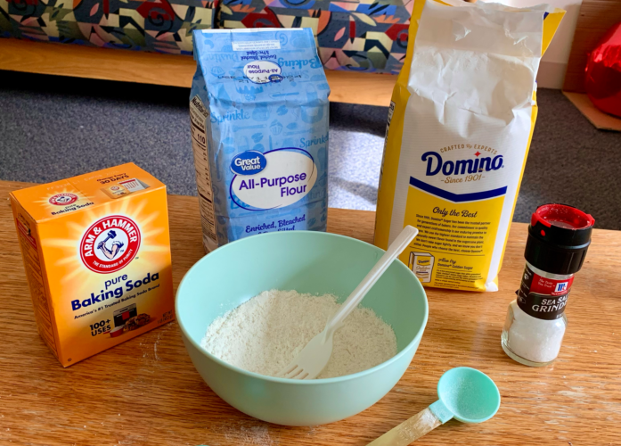 - Combine flour, sugar, baking soda, and salt in seperate bowl