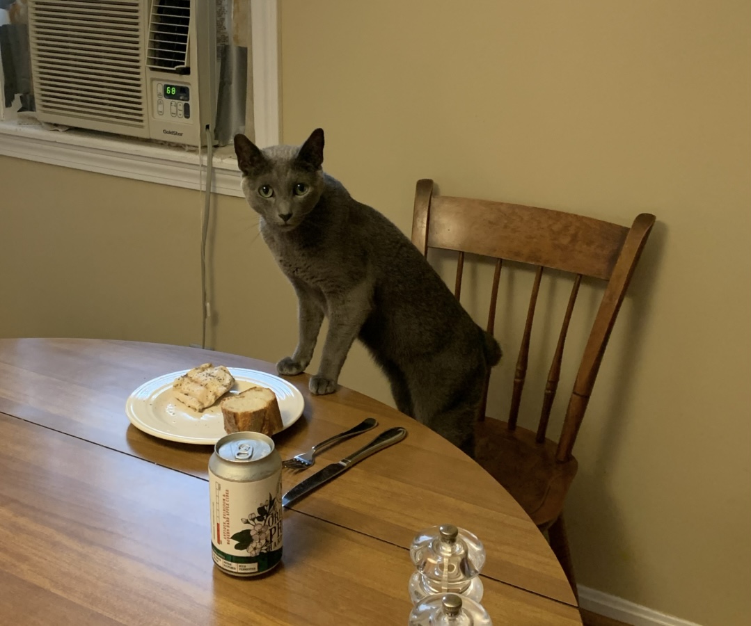 Lapis thinks he is a human (which is fine), but he likes to steal MY food (which is not).